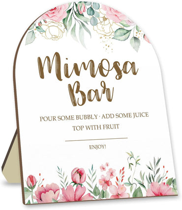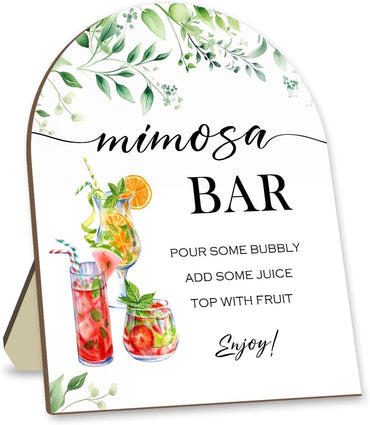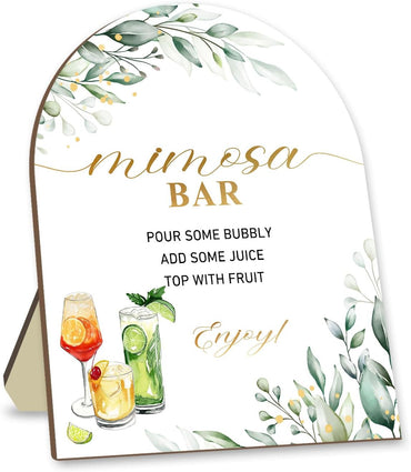 Mimosa Bar Sign with Stand, Eucalyptus Leaf Decoration Mimosa Bar Sign, Baby Shower Party Plaque, Wedding Party Sign, Wedding Reception & Event Party Supplies