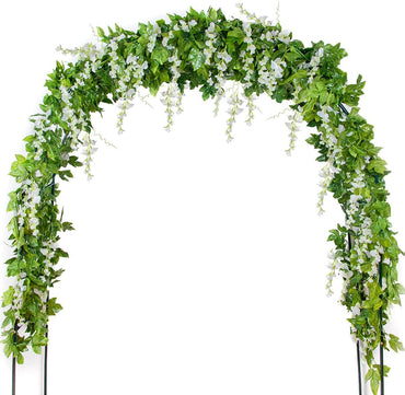 Mavee Artificial Wisteria Vine Garland Hanging Decor - 28.8ft Silk Flowers with Ivy Leaves (4x7.2ft) for Wedding, Home Floral Arrangements - White