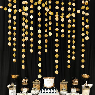 Brand: Decor365Color: GoldMaterial: PaperItem Length: 624 InchesPlant or Animal Product Type: Circle DotGlitter Gold Garland for Parties: Includes...