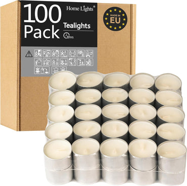 HomeLights Unscented Tealight Candles - 100 Pack, 8hr Smokeless White Votive Candles for Shabbat, Weddings, Home Decor