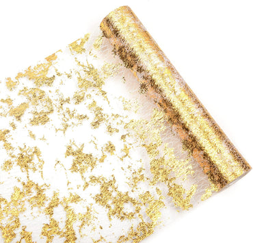 Color: GoldMaterial: PolyesterSize: 11 Inches x 16 FeetBrand: WELTRXEPattern: SolidStylized polyester netting with metallic gold foil, easy care...