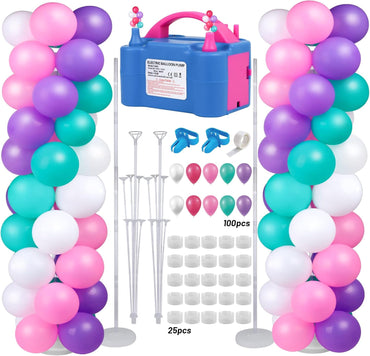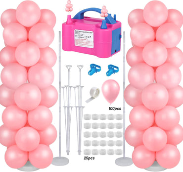 Gifts2U Balloon Column Stand and Balloon Pump, Electric Balloon Pump with 2 Sets 7Ft Ajustable Balloon Column Kits and 100 Pcs Balloons for Graduation Birthday Party Home Decoration (100-110V 600W)