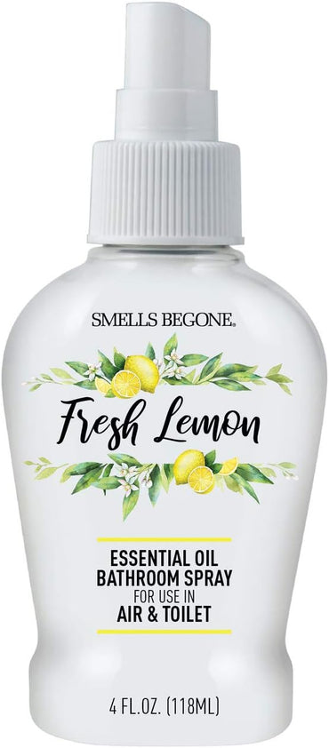 SMELLS BEGONE 4 oz Essential Oil Air Freshener Bathroom Spray - Eliminates Bathroom & Toilet Odors - Made with Essential Oils - Fresh Lemon Scent
