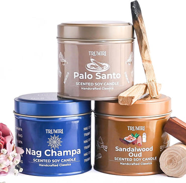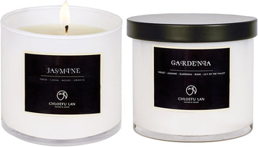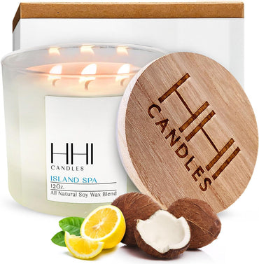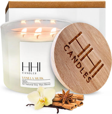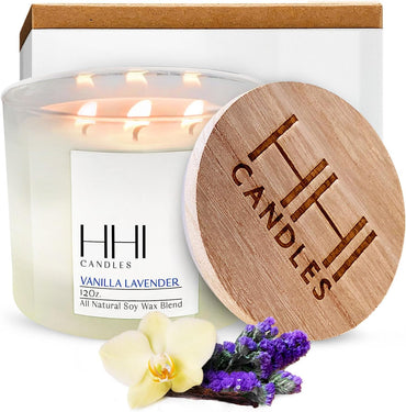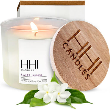 HHI All-Natural Scented Soy Candle | Sweet Jasmine | A Fresh Blend of Chamomile, and Cedar | Large 12 Ounce 3 Wick | Long Burn time | Includes Bamboo Lid and Gift Box