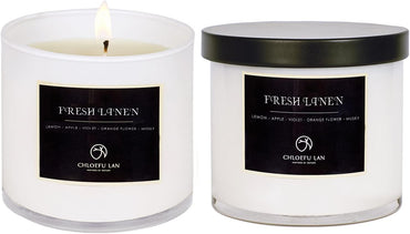 Chloefu LAN Fresh Linen Candles Laundry Candles Non-Toxic Air Freshening Scented Candles Decorative Candles Pet Odor Eliminator for Home Luxury Scented Soy Jar Candle for Bathroom Decor 7.1 oz 2 Pack