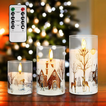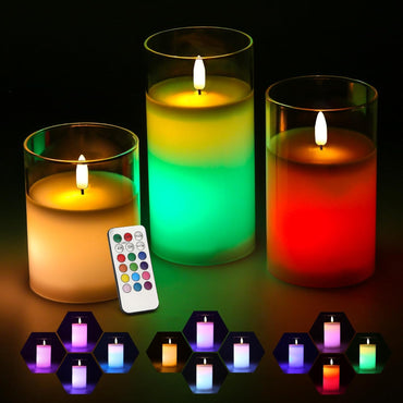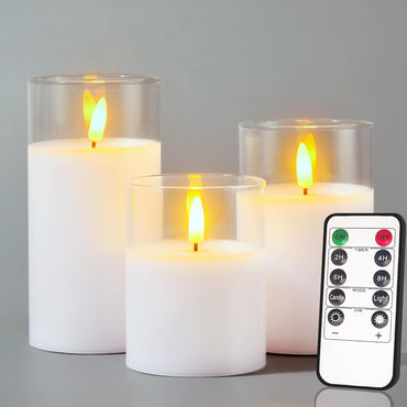 Glass Battery Operated LED Flameless Candles with Remote and Timer, Real Wax Candles Warm Color Flickering Light for Festival Wedding Home Party Decor(Pack of 3)-Gold
