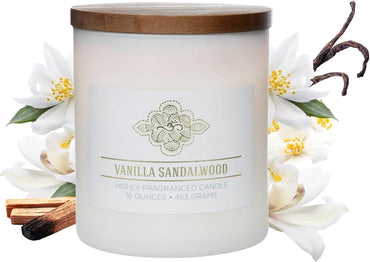 Vanilla Sandalwood Scented Jar Candle, Wellness Collection, Relaxing Aromatherapy Candle, 2 Wick White Jar Soy Blend Wax Candle for Home, 60hr Burn, 16 oz - USA Poured
