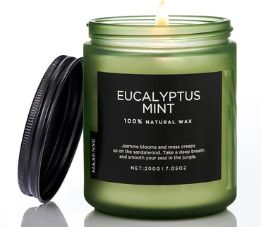 M&SENSE Eucalyptus & Mint Soy Candles for Home Scented, 11.6oz 70 Hour Burn Aromatherapy Candle Gift for Stress Relief, Meditation, Yoga, Relaxing SPA, Reusable Jar Candles for Men and Women