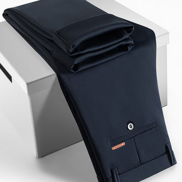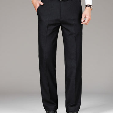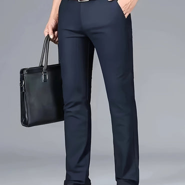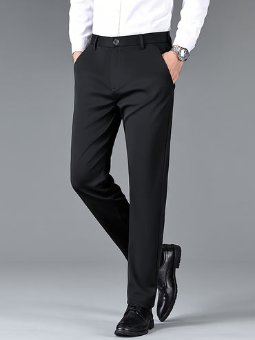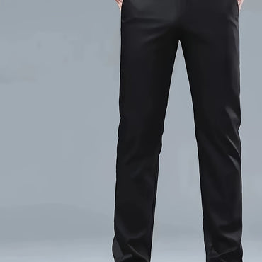 [Smooth Texture, Comfortable Fit] Versatile Lightweight Polyester Men's Sleek Solid Black Dress Pants - Elegant Drape, Machine Washable, Perfect for All Seasons