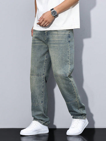Manfinity Homme Men's Straight Loose Casual Versatile Jeans With Pockets