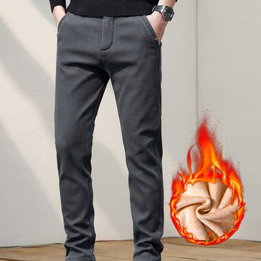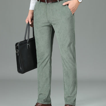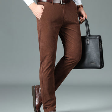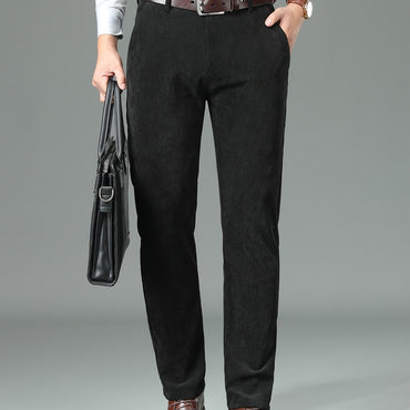 [Fleece Lined Corduroy Dress Pants] Warm Fleece Lined Corduroy Men's Dress Pants - Casual Straight-Leg, Business Style with Button Detail for Fall/Winter
