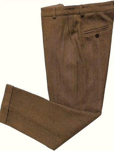 Vintage Style Men's Classic Herringbone Tweed Dress Pants - Retro Wool Blend Flat Front Suit Trousers, Black, Light Business Style, Glossy Fabric, Perfect for Spring & Fall, Elegant Pant Suits