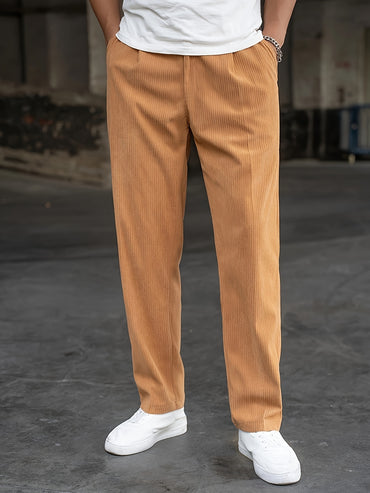 [Vintage-Inspired Corduroy Pants] Casual Vintage-Inspired Corduroy Men's Dress Pants - Loose Fit with Pockets for Fall/Winter