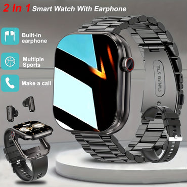 Coiusor new 2.02 "2-in-1 smart watch, built-in TWS headset, wireless call, phone sync information, with call/date/weather and other functions, a variety of sports modes, Men's and Women's smart watch, fashion design, can connect to a variety of mobile pho