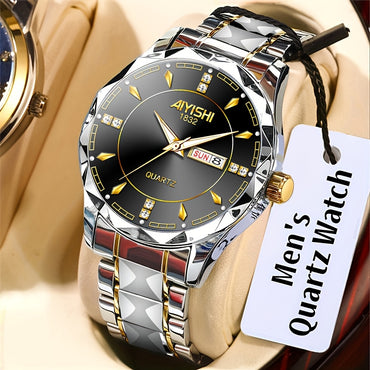 AIYISHI Fashionable And Casual, Night Light, Dual Calendar, Pointer Style Men'S Watch With Rhinestone Decoration, Father'S Day, Ramadan, Thanksgiving