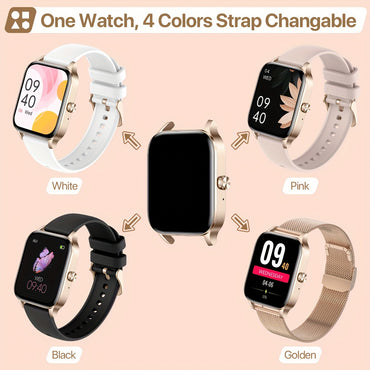 Women's Smart Watch, Support For iPhone/Android Phones, Fitness Tracking Watches, Wireless Calling, Receive Message, Multiple Sports Modes, Many Free Watch Faces Provided, Drink Water Reminder, Get Weather Information, Music Control, Remote Camera.