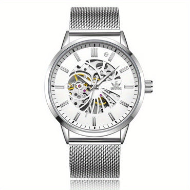 Men's stainless steel mechanical watch, circular dial, date display, automatic winding movement - elegant and fashionable sports timepiece for casual or formal occasions