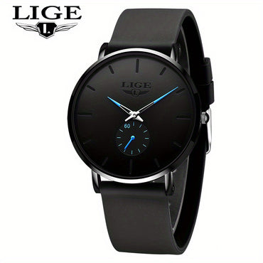 LIGE 2024 New Fashion Minimalist Women/ Men's Watch. Classic Ultra-Thin wristwatch with Silicone Strap. Waterproof Quartz Watches suitable for Birthday/ Christmas gift