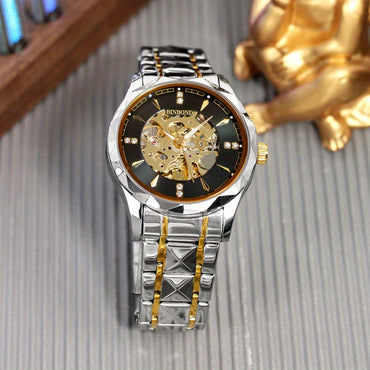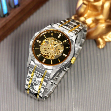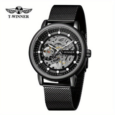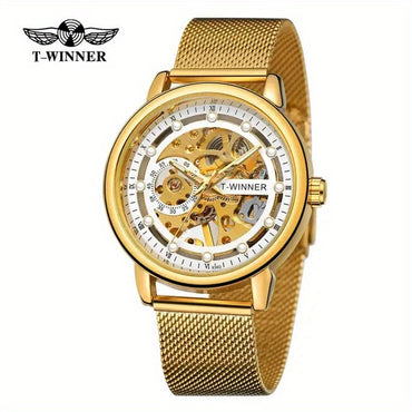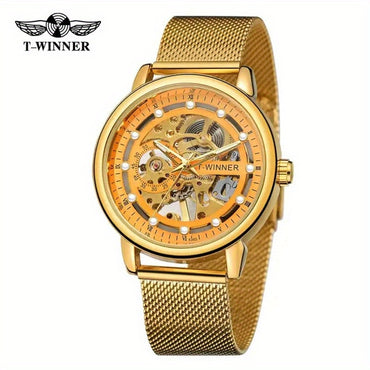 T-winner Men's Mechanical Watch - Automatic winding, Golden-Tone Case & Black Dial with, Waterproof, No Battery Needed - Formal & Everyday Luxury Watch for Men, Bling Watches, Stylish Wristwatch, Sleek Timepiece, Precision Engineering, Wristwatch for Men,