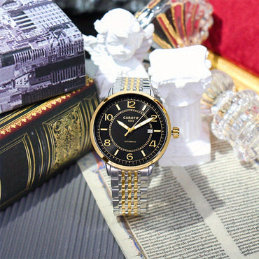 1pc Men's Automatic Mechanical Watch - Golden-Tone Hands & Black Dial, Day/Date Display, Arabic Numerals - No Battery Needed, Everyday & Formal Watch for Men - Ideal Gift for Watch Enthusiasts