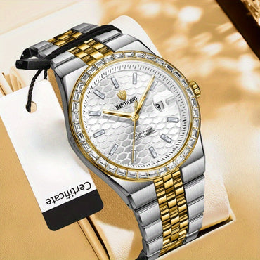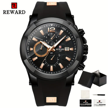1pc REWARD Men'S Watch, Chronograph Luminous Golden Watch, Stainless Steel Strap, Ideal Choice for Gifts