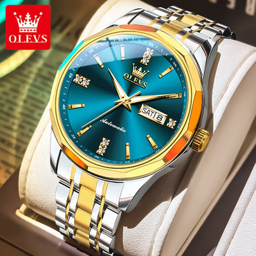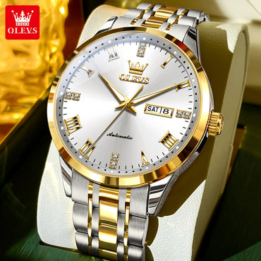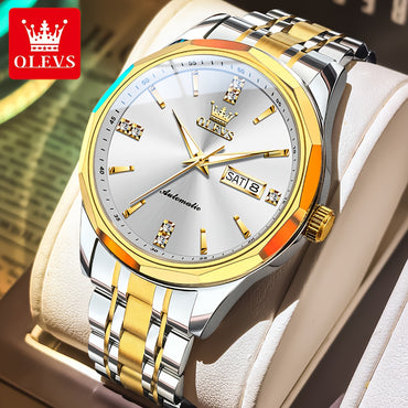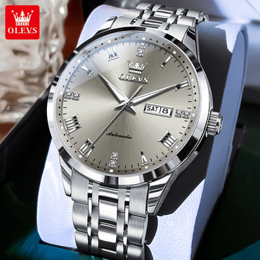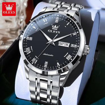 OLEVS Brand Stainless Steel Dual Calendar Luminous Automatic Mechanical Watches for Men Best Selling Original Fashion Trend Luxury Business Men's Wrist Watches, Mechanical Watches for Men High Quality, Fashion Watches for Men, Formal Wear Watch, Business