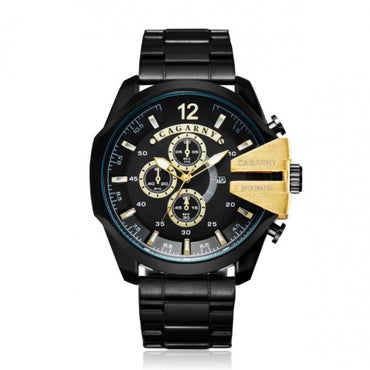 Luxury Men's Mechanical Watch - Stainless Steel Black & Golden Business Chronograph Wristwatch with Multi-Dial Chronograph, High Quality, Date/Day/24H Indicator, Automatic Winding for Professional & Everyday Use - No Battery/Electrical Operation, Office A
