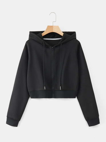Details: Drawstring, Pocket Neckline: Hooded Sleeve Type: Drop Shoulder Style: Casual Color: Black Pattern Type: Plain Top Type:...