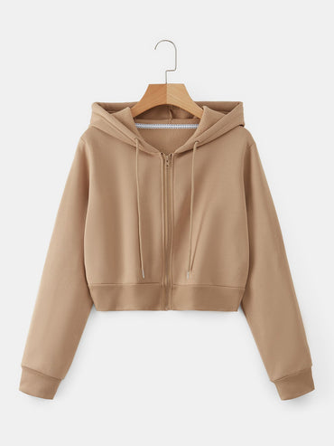 Neckline: Hooded Sleeve Type: Regular Sleeve Style: Casual Type: Zip Up Color: Apricot Pattern Type: Plain Sleeve Length:...