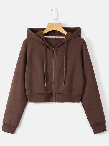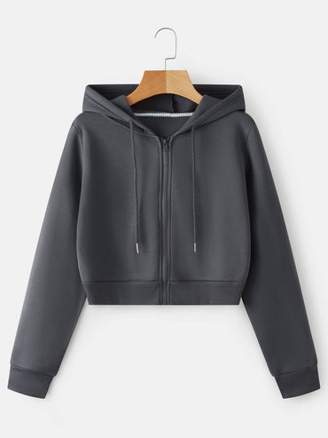 INAWLY Solid Zip Up Drawstring Crop Thermal Lined Hoodie,Long Sleeve Tops