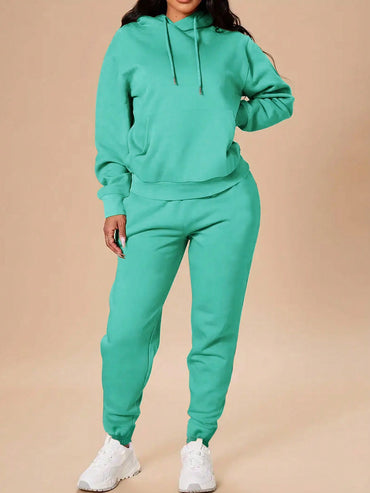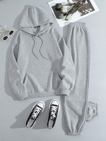 INAWLY 2pcs/Set Solid Color Long Sleeve Hoodie And Sport Pants