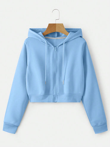Details: Drawstring, Zipper Neckline: Hooded Sleeve Type: Regular Sleeve Style: Casual Type: Zip Up Color: Blue Pattern Type:...