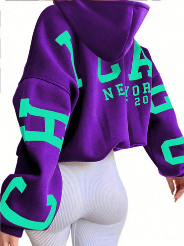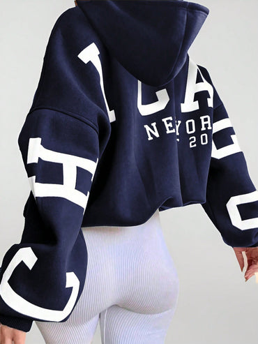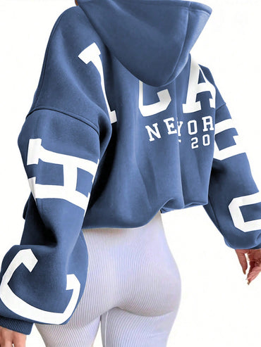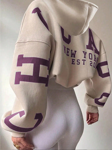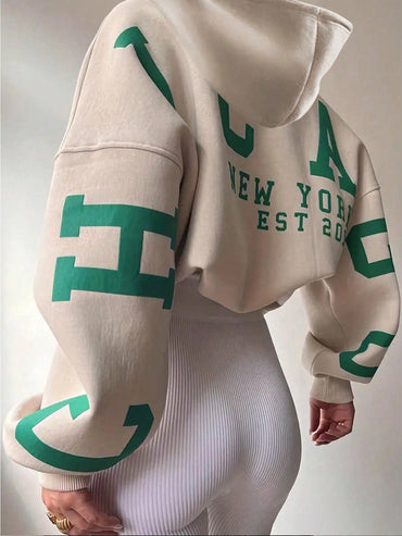 INAWLY Women Casual Letter Print Hooded Sweatshirt, Autumn/Winter,Long Sleeve Tops