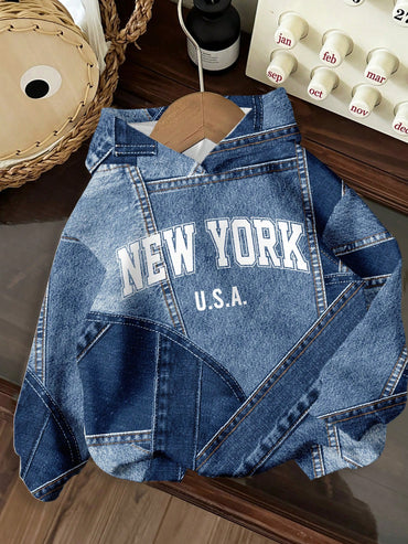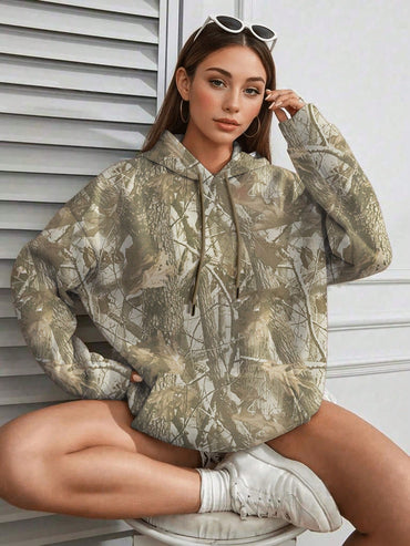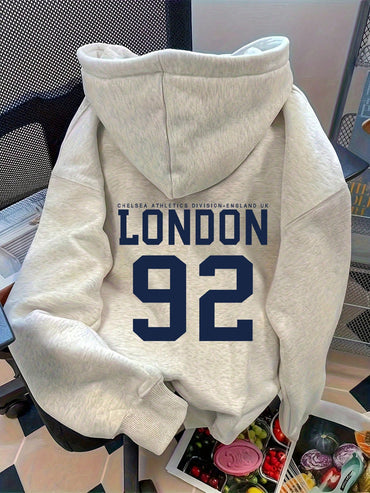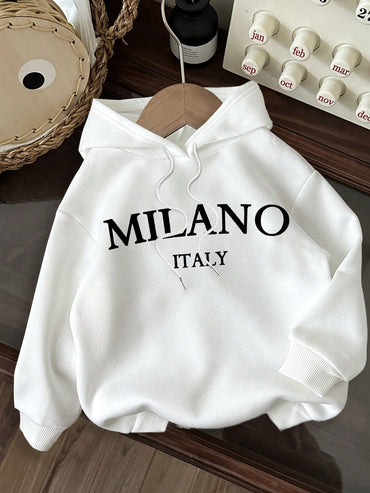 EZwear Women's Casual Simple Milano Pattern White Hoodie Sweatshirt, Loose Fit, Thick Thermal Lined, Suitable For Autumn And Winter,Long Sleeve Tops