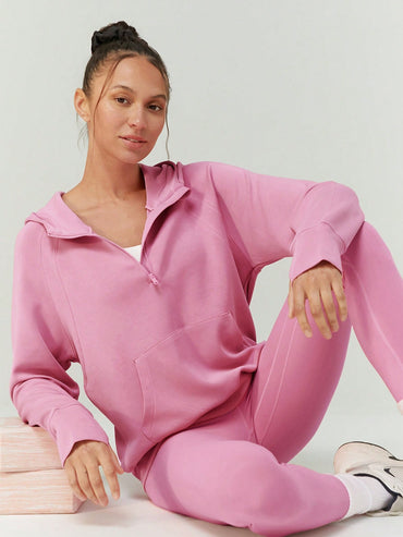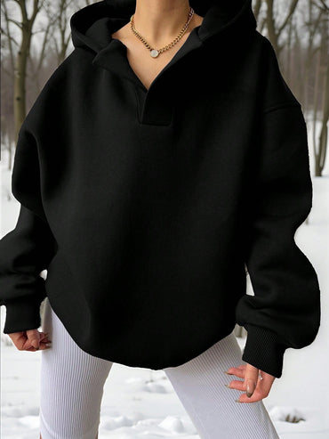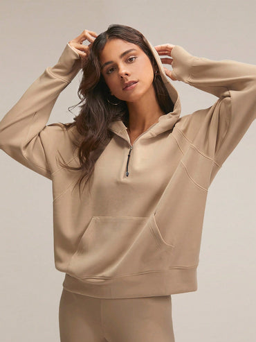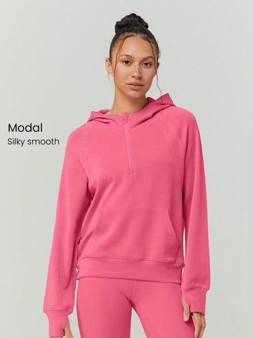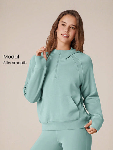 GLOWMODE Modal Silk Touch Oversized Long Sleeve Half-Zip Hoodie Fall