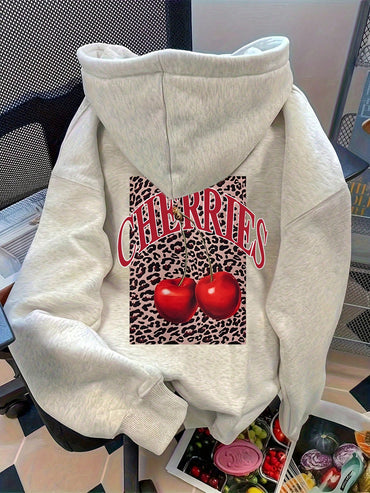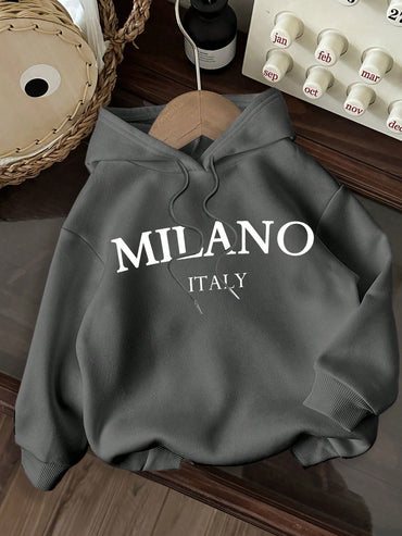 INAWLY Women's Letter Print Drop Shoulder Grey Hoodie Sweatshirt, Autumn/Winter