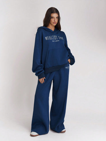 Women's Hoodie & Joggers Set With Zipper Front Closure And Drop Shoulder Design