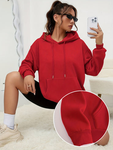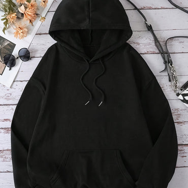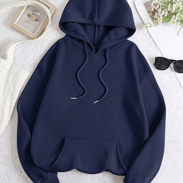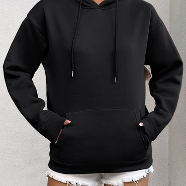 Cozy Solid Loose Drawstring Hoodie - Soft Casual Long Sleeve Pocket Sweatshirt with Relaxed Fit, Comfortable Women's Clothing for Everyday Wear