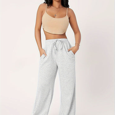 Women'S Casual Solid Color Jogger Pants with Drawstring, Polyester 100% Knit Fabric, 230g/m², Spring/Fall Breathable Sweatpants for Adults