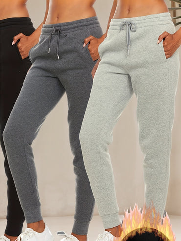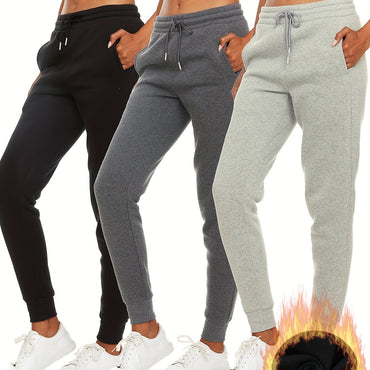 3-Pack Women'S Fashion Solid Color Joggers, PB-464, Polyester Knit, Casual Style, Drawstring, Cuffed Ankle, Adult Sizes, All-Season Comfort