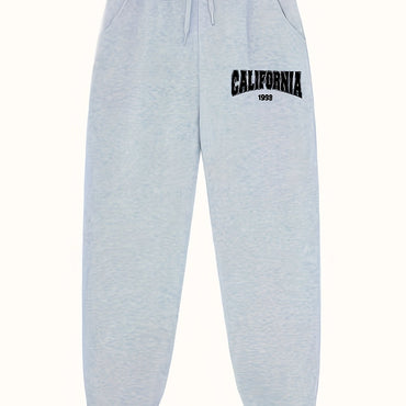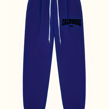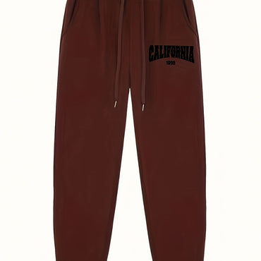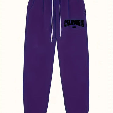 1pc Men's Casual Sweatpants, 100% Polyester Knit Fabric, Regular Fit with Pockets, Alphabet Pattern, Basic Style for Fall/Winter - Adult, Casual Sweatpants