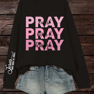Women's Plus Size PRAY Print Pullover Sweatshirt - Casual Long Sleeve Crew Neck Sweatshirt for Fall & Spring Seasons