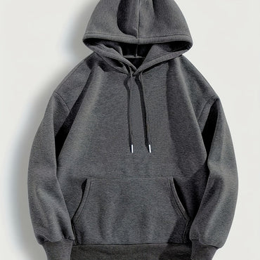 [Polyester Active Hoodie] Polyester Blend Hooded Sweatshirt - Long Sleeve Solid Color Active Hoodie with Drawstring and Kangaroo Pocket