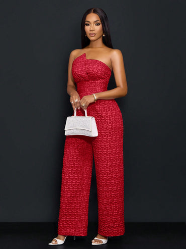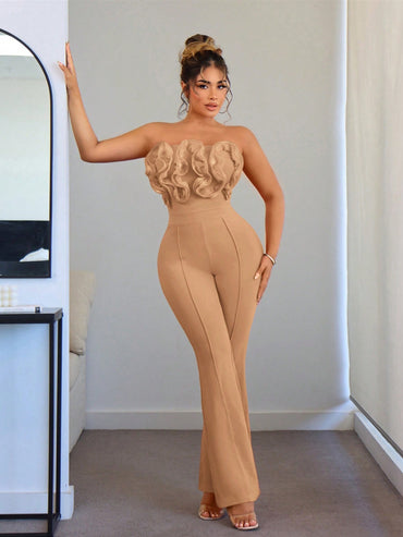 SXY Jiri Clothing Summer Pink Jumpsuit For Women, Graduation, Prom, Or Date Dress With Ruffle, Pleats, Lace Edging, And Tight-Fitting Bustier