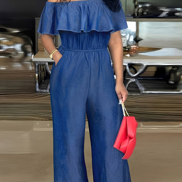 Elegant Off-Shoulder Navy Blue Jumpsuit For Women With Pockets