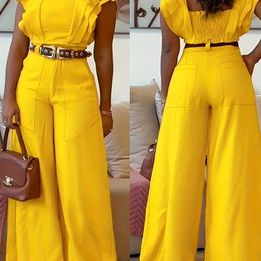 Peterbilt Sleeve Waist Cinching Range Top Set High Waisted A-Line Wide Leg Pants - Belt Not Included