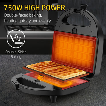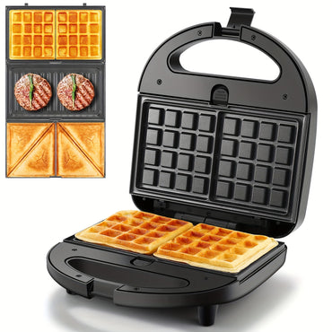 3-in-1 Sandwich Maker, Panini Press & Waffle Iron, 750W Toaster With Removable Non-Stick Plates, Perfect For Grilled Cheese, Sandwiches & Steaks, Black