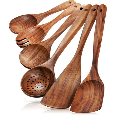 Natural Healthy Kitchen Utensils Wooden Spoons for Cooking – Wooden Kitchen Utensils Set, 6pcs Teak Wood Utensil Set – Comfortable Grip Non-Stick Wooden Cooking Utensils – Nonstick Natural and Healthy Kitchen Cookware