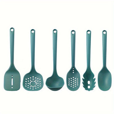 Non-Stick Heat Resistant 6-Piece Nylon Kitchen Utensil Set - Durable Easy-Clean Cooking Tools with Soup Ladle, Slotted Spatula, Mixing Spoon, Skimmer, Pasta Server - Modern Kitchen Accessories
