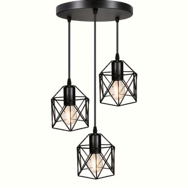 High Quality Traditional Industrial 3-Light Pendant Chandelier, Adjustable Semi-Flush Mount Ceiling Fixture with E27 Base, Polished Metal Finish, Iron Shade, Compatible with Amazon Alexa, Hard-Wired 110V-240V for Kitchen, Dining Room, Hallway